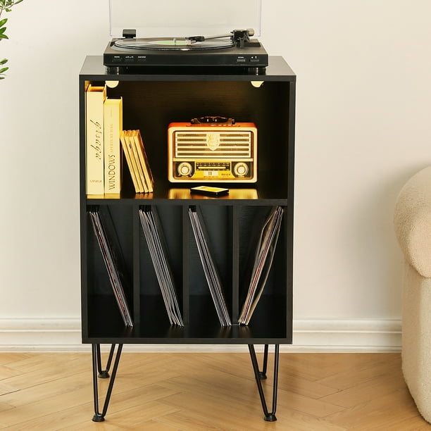 Hommpa Turntable Stand With Storage Shelf Rgb Led Vinyl Record Rack Storage Cabinet Black Walmart Com